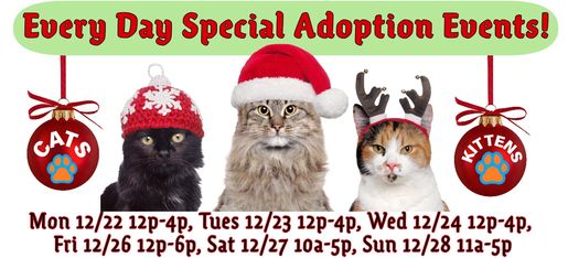 Give a loving rescue kitty a home this holiday season! Come to an Adoption Event at the San Juan Capistrano PetSmart and fall in love with one of our Ark Angel furr-babies. We will be having DAILY ADOPTION EVENTS from now through out this holiday period. You can view some of our sweet cats and kittens by clicking the blue button below.