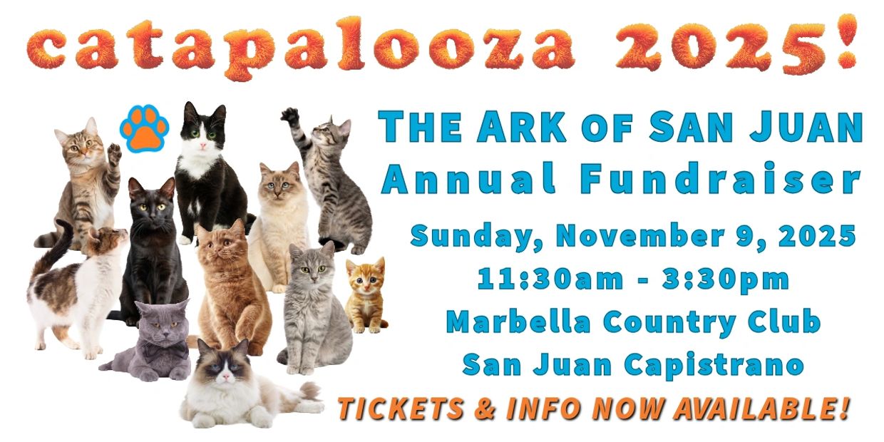 Over 150-200 will attend this year's CATAPALOOZA to support The Ark to fulfill our mission to rescue the lost, abandoned and injured domestic cats and kittens in our local area. Last year we rescued over 1,000 kitties! The donations raised help to fund our rescue efforts over the coming year. Please consider supporting The Ark by becoming a SPONSOR or FRIEND OF THE ARK.