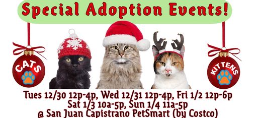 Give a loving rescue kitty a home this holiday season! Come to an Adoption Event and fall in love with one of our Ark Angel fur-babies. We will be having DAILY ADOPTION EVENTS from now through out this holiday period. You can view some of our sweet cats and kittens by clicking the blue button below.