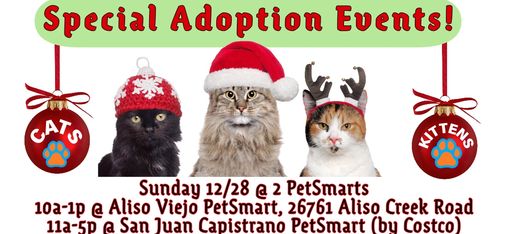 Give a loving rescue kitty a home this holiday season! Come to an Adoption Event and fall in love with one of our Ark Angel fur-babies. We will be having DAILY ADOPTION EVENTS from now through out this holiday period. You can view some of our sweet cats and kittens by clicking the blue button below.